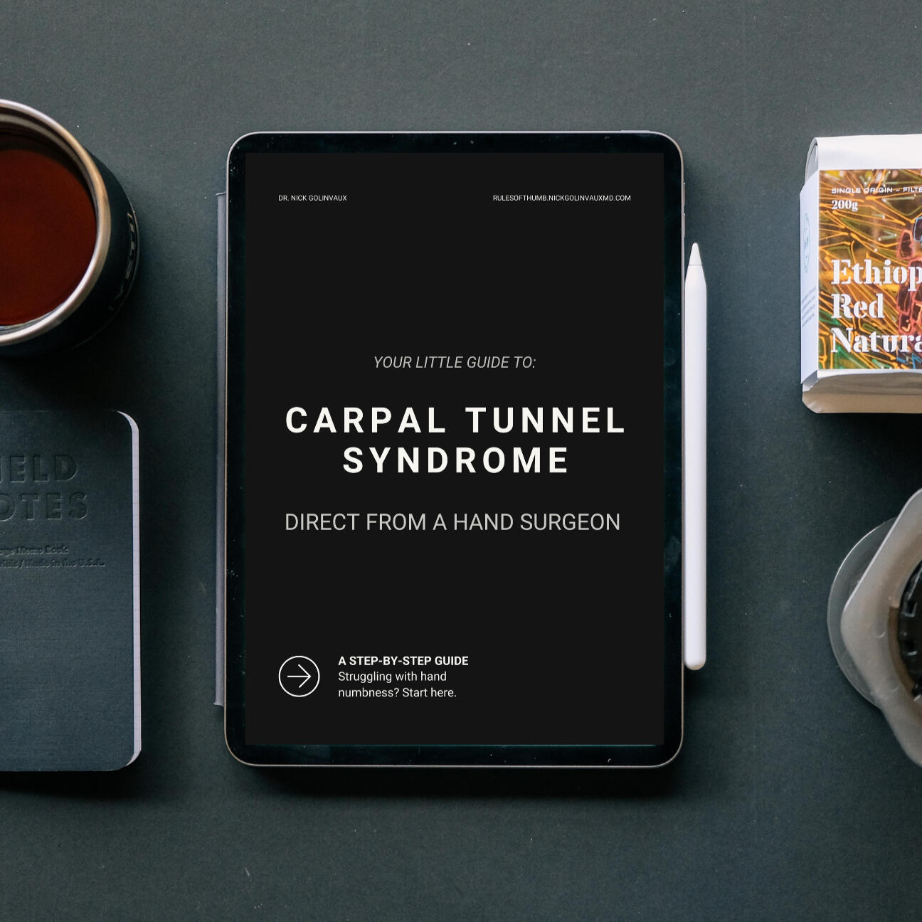 As a hand surgeon trained at Yale, Vanderbilt, and Harvard, Dr. Nick Golinvaux (“Dr. G”) knows the ins and outs of carpal tunnel syndrome. But more importantly, he knows how frustrating it can be for patients to navigate the healthcare system and find reliable answers.This ebook is your chance to have a sit-down lesson from a specialist who’s treated countless carpal tunnel syndrome patients. Packed with insights, diagrams, and practical education, this guide empowers you to:• Understand what’s happening in your hands• Make informed decisions about your treatment• Take proactive steps to alleviate pain and preserve function